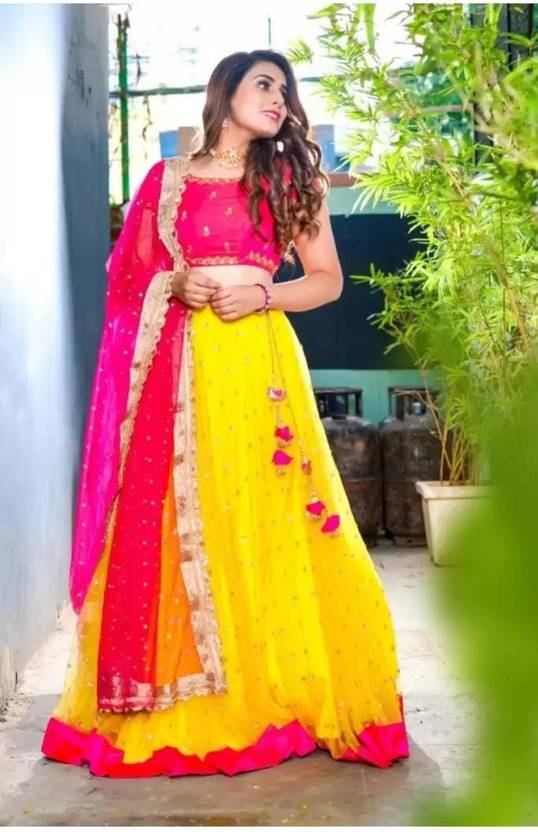 MOR FOR FAB LEHENGHA CHOLI Name is enough to delight women. Our designer designed special collection Lehenga choli for Indian girls to wear in party and this festive season. This is perfect gift to your sister for this Raksha bandhan Navratri/and Diwali. Christmas, New Year. Lehenga Choli Fabric SATIN Lehenga,Choli?s Self design work. Choli Fabric SATIN . with this fabric Lehenga choli looks so elegant. Net Dupatta. This Lehenga choli Has ? Four ? different colours so your favourite and get attraction in every events. Colour is slight different due to your visual setting of monitor and mobile screen. Style Tip: For an elegant look, long this lehenga Choli, with statement earrings & high heels. For a Stylish look, Material & Care: Dry clean only. Generic Name Lehenga & Choli
